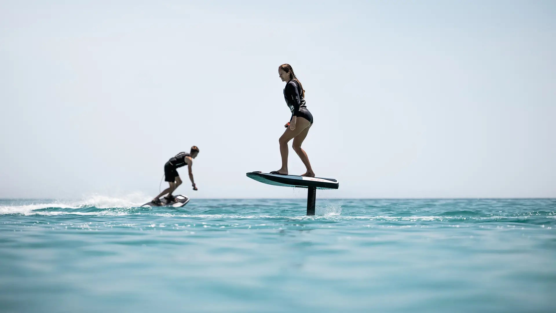 Komfort und Kontrolle sind entscheidend für die perfekte Fahrt, deshalb ist jedes Detail auf Stabilität und Leistung ausgelegt. Das rutschfeste Deckpad sorgt für sicheren Halt, während die Fußriemen Fersen- und Zehenunterstützung für maximale Kontrolle bieten. Das hintere Deckpad hilft beim sanften Übergang vom Liegen zum Stehen. Mit einem Druck auf den Daumen liefert der kabellose Handcontroller sofortige Beschleunigung, wodurch das Hydrofoil-Surfen und das Carven durch Wellen mühelos machbar wird. Wenn die Session zu Ende ist, macht das leichte elektrische Board mit integrierten Tragegriffen den Transport mühelos.