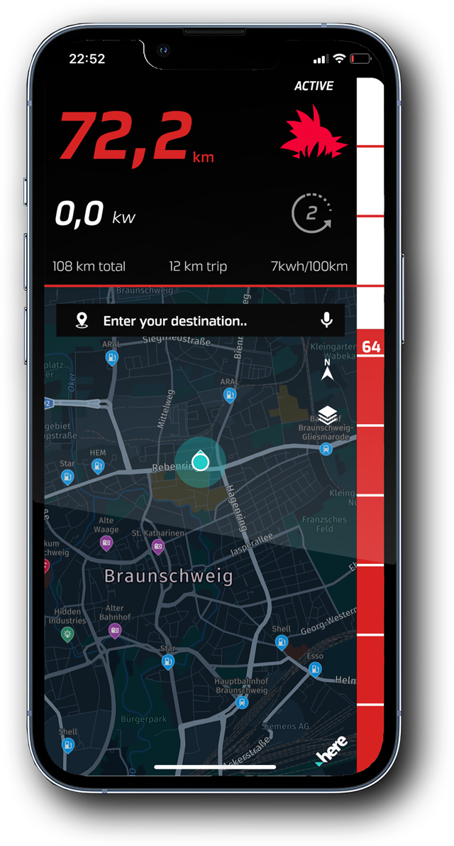 Unser speziell entwickelter Radnabenmotor mit seinem futuristischen Design sorgt in Kombination mit der leistungsstarken Batterie und der geringen Fahrzeugmasse für ein überlegenes Leistungsgewicht. Unsere Fahrleistungen übertreffen problemlos vergleichbare 125-ccm-Maschinen.